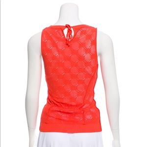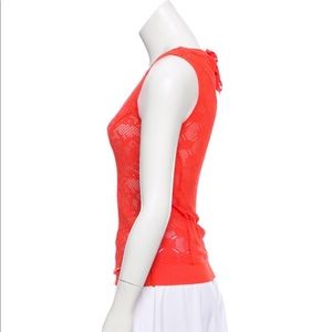 NINA RICCI Open Knit Sleeveless Top Size: M Orange Nina Ricci sleeveless top with scoop neck, floral open knit pattern throughout and tie closure at nape. Bust: 36"