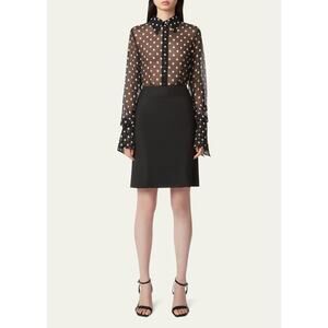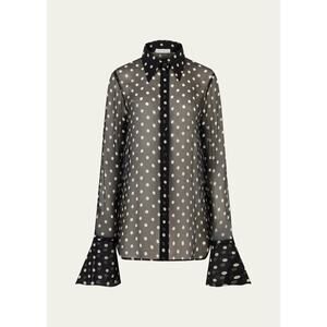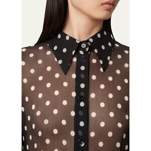 Nina Ricci Chiffon Polka Dot Bell Cuff Blouse in Black & White 38 6 US