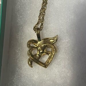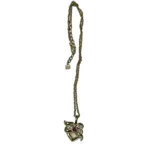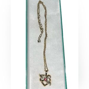 Nina Ricci Gold Plated Swarovski Crystals & Red Ruby Heart Bow Women’s Necklace