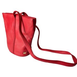Nina Ricci Vintage 80’s 90’s Red Leather Bucket Shoulder Bag