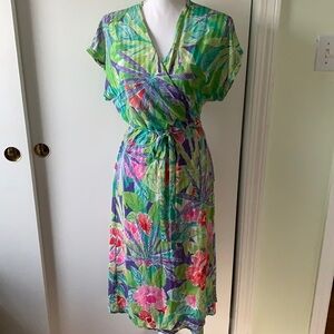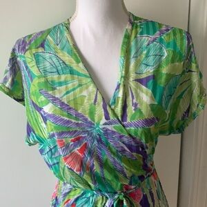 Nina Ricci Vintage Tropical Print Wrap Dress/Swim Cover Up 10