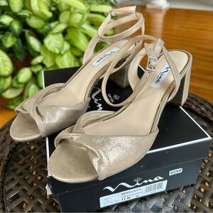 Nina Sandals Womens 11 Taupe Block Heels Nigella - FY