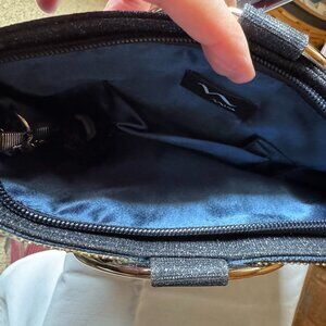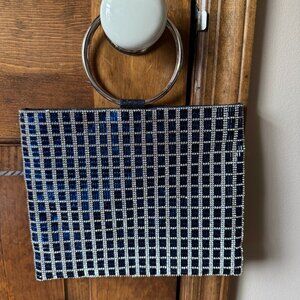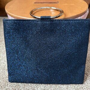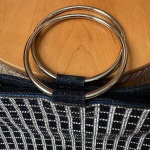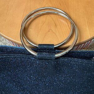 Nina Sandia Blue & Diamond Crystal Embellished Evening Bag w/Silver Rings Handle