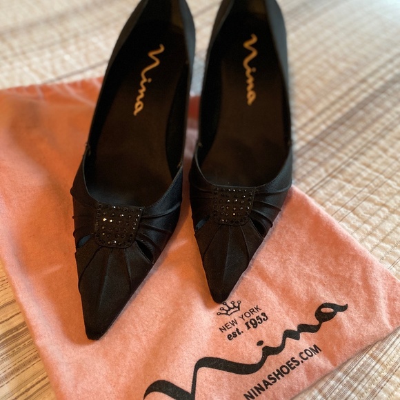 Nina Satin Dress Pumps Size 10M/ EUR 40. Color: Black with Black Beads