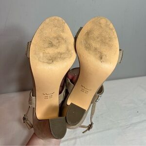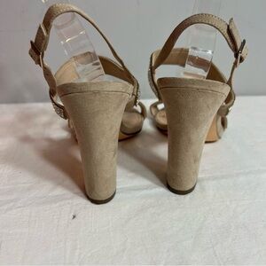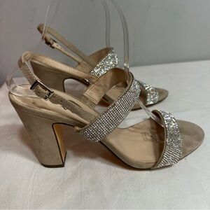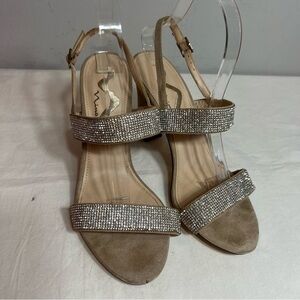 Nina Senta nude tan rhinestone double strap adjustable strap block heels 9.5