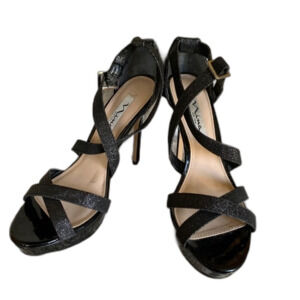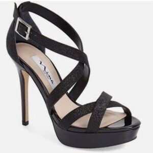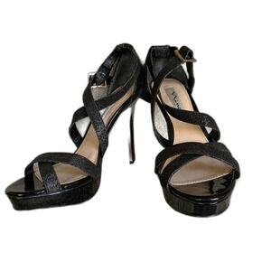 Nina Sevilla Black Sparkling High Heel Platform Strappy Sandals Size 8.5