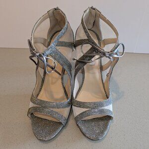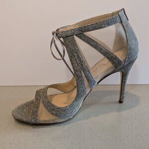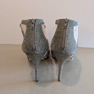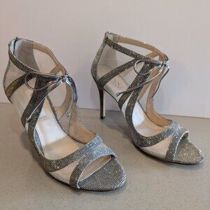 Nina Silver Sparkle and Mesh Open Toe Heels Size 8.5