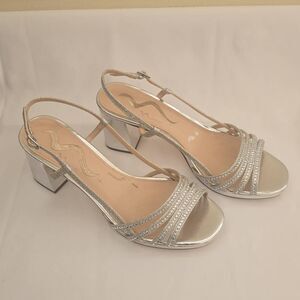Nina Silver/Rhinestone Blanche Sandal,Block Heel, NEW, SIZE 9, Worn Once