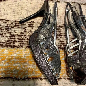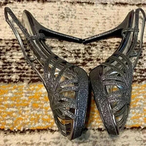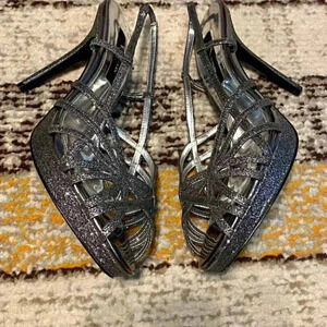 Nina Sliver Black Metallic Sparkling Glitter Party Strappy Platform Heels