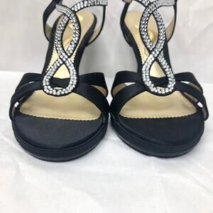 Nina Stiletto Evening Heeled Sandal Gem Studded Snaking Straps Black 7