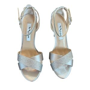Nina Venus Crisscross Stiletto Evening Heels Sandal Crystal Silver NEW 5.5