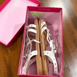 Stylish white sandals with silver stud details. Strappy design with secure buckle closure. Ideal for casual outings.