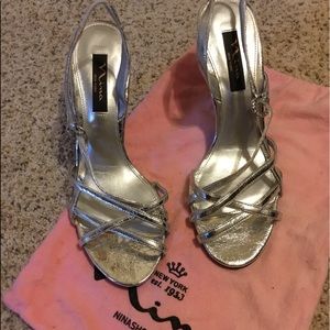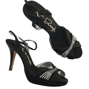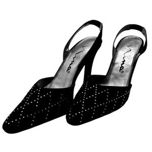 Nina Women's Black Glitter Slingback Heels Size 8.5