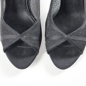 Nina Women’s Heels Romantic Wedding Guest Lace Peep Toe Black Stiletto Size 7.5