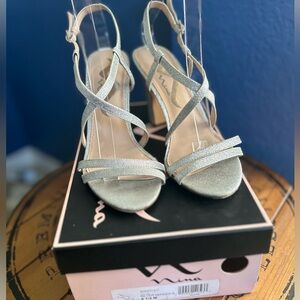 Nina Women's Sissy Silver Glitter High Heel Refined Block Dress Shoe Size 6.5