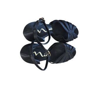 Nina Women's Size 7 Black Satin Ankle Strap Heels