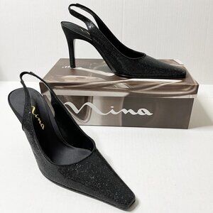 Nina Women's Taren Heels Size 8.5M Black Crystal Sling Backs Pointed Toe w/ Box