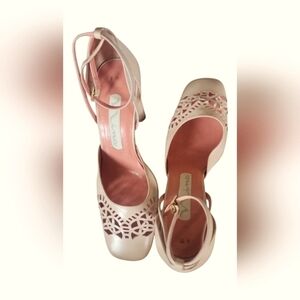 Nina Women's Vintage Pink Laser Cut Out Square Toe Leather Made In Spain Heels 9