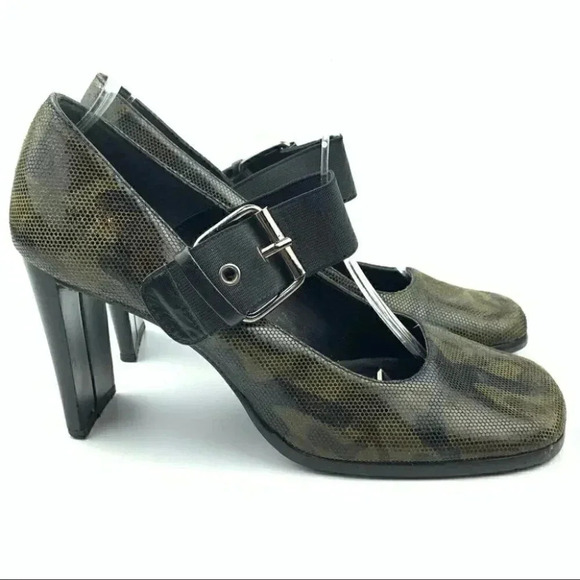 Nina womens heels size 6.5 leather army green camo vintage 90s square toe Mary Janes military