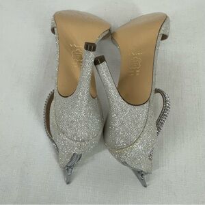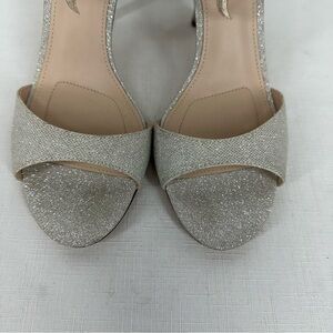 Nina size 9 Silver Glitter Open Toe Jeweled Ankle Strap Heels