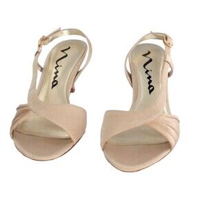 Nina women's 9.5 Satin Strappy Slingback Gold Sandals Halena 3 In Heel