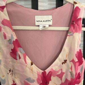 Nina Austin gorgeous feminine 100% silk pink floral dress with ruffle size S