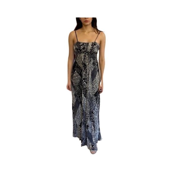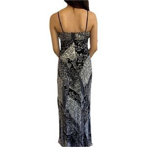 Nina Austin beautiful mixed in animal print black , white , and silver long dress with intricate beading all the way around under bust area . Adjustable thin silky straps and hidden zipper in the back. Built in bra cups and fully lined light chiffon material. Can be dressed up or down perfect for any occasion. Modeled on 5’5” with no heels.