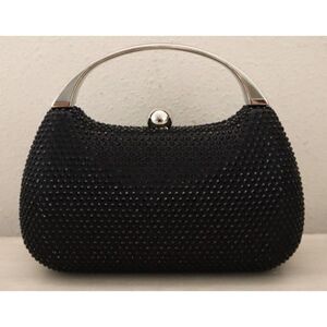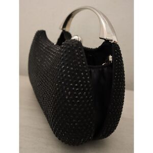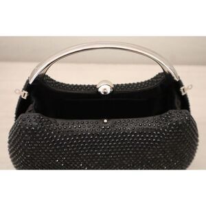 Nina Black Crystal Minaudiere w/Metal Handle & Detachable Drop-In Chain Strap