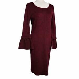 Nina Leonard shift scoopneck pleated bell sleeve and knit construction dress size M