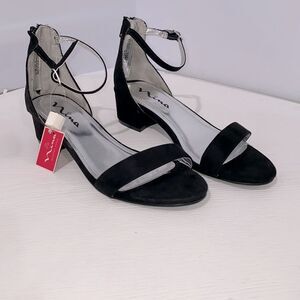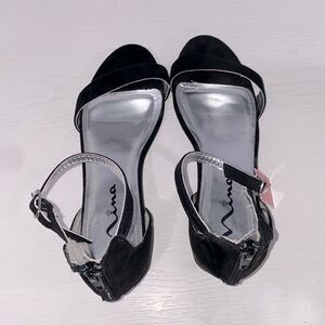 Nina Memory Foam Elegant Black Ankle Strap Sandals Block Heel Size 6M