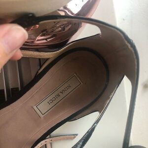 Gently used 100% authentic Nina ricci sandals. What you see is what you get! No longer have dust bags or boxes but I can send with a dust bag of some kind. Normal wear to the exterior soles and I will wipe the interior soles clean. They are in excellent condition.