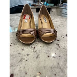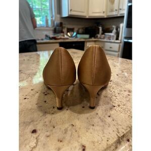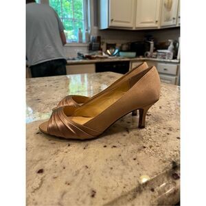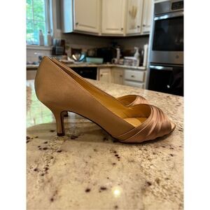 Nina Tan Champagne Satin Peep Toe Kitten Heel Pumps sz 6.5W New No Box