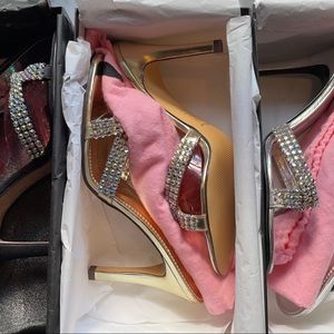 Gorgeous Nina’s Rhinestone Samdals in 3 different colors. Very comfy & sexy. Great with a cocktail dress or even a long gown. Each for $30.00