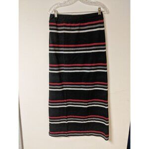 Nine 1 Eight Size S Maxi Skirt Gray White Red Striped Long Modest Knit
