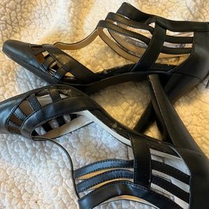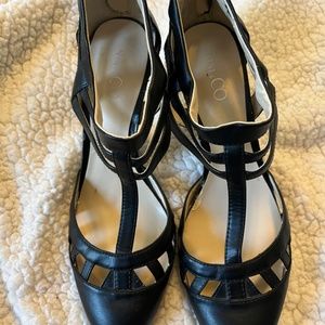 Elevate your footwear game with these Nine & Co JJ Frida gladiator heels. The sleek black leather upper with straps and a zip closure make these stiletto heels perfect for any occasion. The round toe and high heel height add a touch of vintage glamour to your outfit.