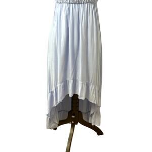 Nine Bird High-Low A-Line Dress Off-Shoulder Flutter Hemline Flowy Sky Blue S