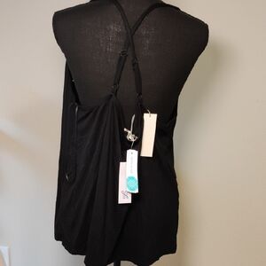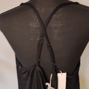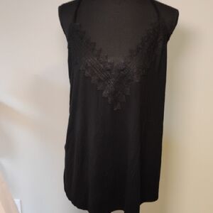 Stylish black cami with elegant lace accents. Ideal for chic occasions.