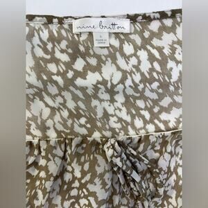Nine Britton Cream Tan Pattern Smocked Sheer Blouse Size L Long Sleeve