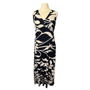 Nine Britton NEW Navy Blue White Long Maxi Dress Floral Stretch Size Large