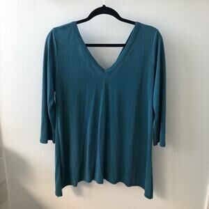 Nine Britton Women's Teal V Neck Tunic 3/4 Sleeves Shirt Top Size L