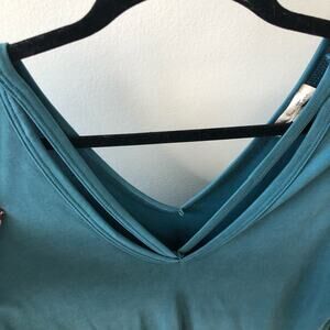 nine britton teal V neck tunic top