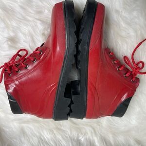 Nine & CO Men red rubber lace up boots with black trim and rubber soles …