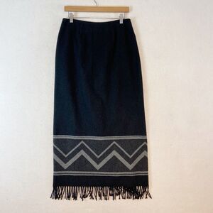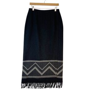 Nine & Co 90s Long Wrap Skirt Women's 10 Gray Fringe Southwestern Navajo Print