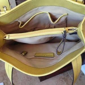 Approximately 12" by 9" size yellow Nine & Co. bag. Never been used, minor scratches due to time spent in storage but not noticeable!