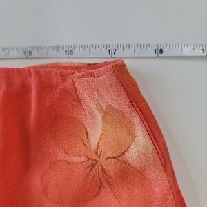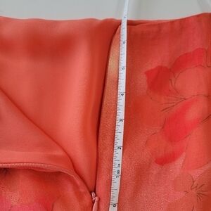 Nine & Co. straight skirt. Orange floral rayon. Lined. Waist measurs flat 17". Hidden zipper measures 7". 29" length. 10.5" slit. Size 18 EUC