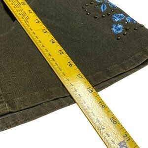 Nine & Co. Olive Corduroy Embroidered Floral A-Line Mini Skirt With Studs Y2K