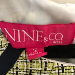 Nine & Co Plus Size Sleeveless Tweed Sheath Dress. Size 16. Softer tweed-like fabric with hints of Lime green, white, and black. Back zipper. Stock photo shows belt but the belt is missing. There is belt loop, no belt. Excellent condition! Perfect for work, date night, or cocktail party.