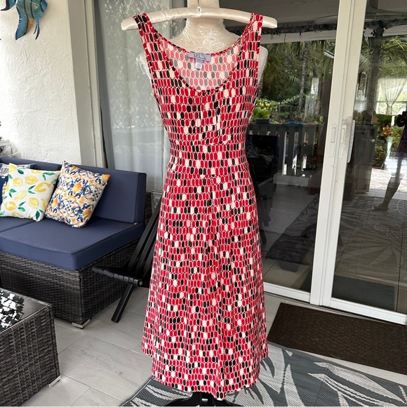 Embrace casual elegance with this Nine & Co. sundress, featuring a vibrant red and white pattern. The sleeveless design and scoop neckline offer a breezy feel, while the midi length adds a touch of sophistication. Perfect for a relaxed day out, this dress combines comfort and style effortlessly.