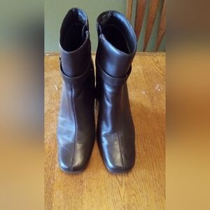 Chic brown leather booties with side buckle. Stylish and versatile.