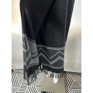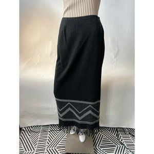 Nine & Co Womens Wrap Skirt Black Gray Chevron Long Maxi Fringe Wool Blend 10